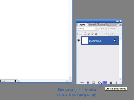 Шаг 2. Перед началом рисования создаем группу Layer - New - Group (Слой - Новый - Группа).