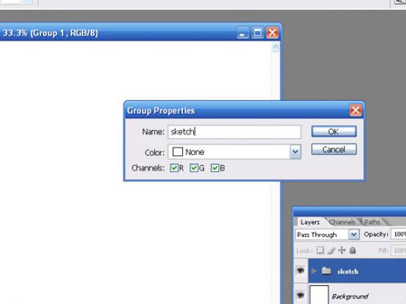 1. Создаем новый слой над группой "скетч".