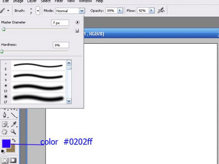 Шаг 4. Теперь в группе создаем новый слой SHIFT+CTRL+N. Выбираем цвет #0202ff. Активируем Brush Tool