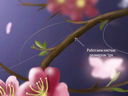 1. Начинаем рисовать ветви и листья.