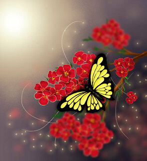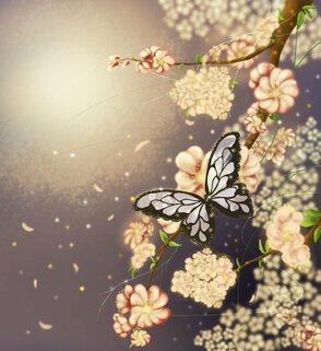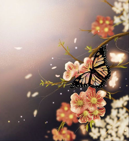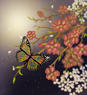 В этом уроке я расскажу вам, как нарисовать бабочку на фоне цветущей весенней ветви.