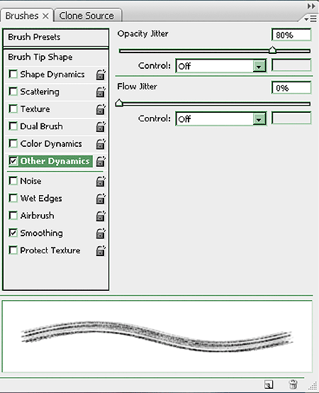 Здесь я применила ещё одну настройку кисти (см. скриншот):