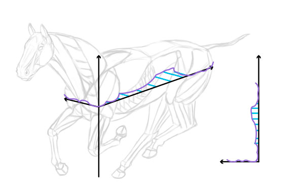Во-первых, для нашего животного необходимо выбрать позу. Я выбрала галоп, используя схему из моего урока о рисовании лошадей. Трехмерные позы будут очень полезны, так как мы собираемся добавлять освещение. Если на этой стадии у вас возникли проблемы – не паникуйте, эта статья о рисовании поз должна вам помочь.