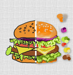 Я взяла ваш набросок,думаю вы не против,мне очень понравилось заниматься этим.Именно часть где нужно,раскрашивать гамбургер)))Спасибо,огромное)))