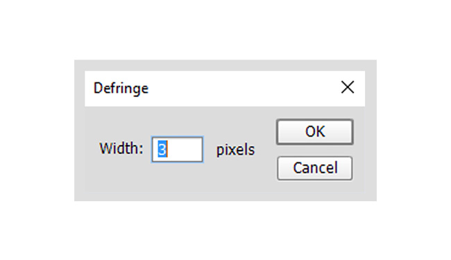 Значение зависит от того, как много пикселей вы хотите обрезать. Defringe (Убрать кайму) можно применять более одного раза, пока не добьетесь желаемого результата.