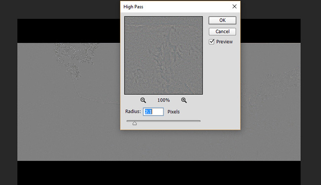 К первой копии применяем фильтр Filter – Other – High Pass (Фильтр – Другое – Цветовой контраст).