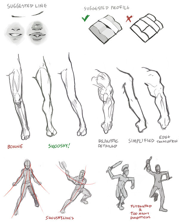 Преувеличивайте - это одна из крутых фишек рисования - вы можете преувеличивать определенные детали, как, например, бедра или грудь. Ха-ха, нет, я серьезно. Это хорошо, когда важные изгибы прорисованы более отчетливо.