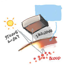 Некоторые оттенки возникают из-за окружающего и отраженного света. Плечи и другие «торчащие» поверхности могут, например, приобрести голубой оттенок из-за отражения неба.