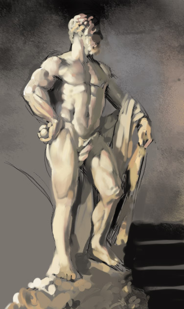 Конструкция - что вы хотите нарисовать? Ваш объект и композиция должны выглядеть хорошо на самом начальном этапе. Если это не так, то никакая обработка это не исправит. Не думайте, что вам удастся спасти работу позднее. Если поза выглядит неправильно уже сейчас, то и в конце она будет выглядит также, даже если бы ее нарисовал сам Рембрандт.