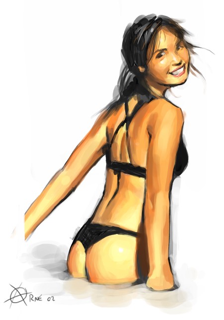 Работайте с большими кистями, дабы избежать лишних мазков. Ниже вы можете увидеть плохой пример и пример получше. На втором примере, я, на самом деле, не много чего сделал - я вообще его упростил. Это просто удивительно, что может измениться, если сделать немного площе тут и немного там. Я, конечно, потратил чуть больше времени на лицо во втором случае - плохое лицо может все испортить. Срисовано с изображения-источника.