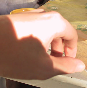 Фото 4. Обратите внимание, что граница света и тени появляется только при переэкспонировании. На большом пальце она не такая четкая.