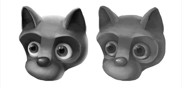 И еще кое-что. Если вы еще раз сравните эти две головы, одну с правильным контрастом с самого начала, а вторую - с исправленным, вы увидите разницу. Поэтому повышение контраста на деле не может исправить ваш рисунок, если вы использовали неверные цвета изначально - у каждого материала есть свой спектр тонов. Например, самая темная часть белой поверхности будет намного ярче, чем самая темная часть черной поверхности. Это значит, что вам следует подготовить как можно больше сфер, так как в вашем рисунке присутствует множество материалов.