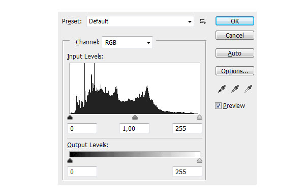 В Photoshop есть инструмент, который помогает в этой ситуации. Он называется Levels (Уровни) и это, на самом деле, гистограмма - она показывает, какое количество каждого цвета содержится в изображении. Вы можете открыть это окно, нажав Image > Adjustments > Levels (Изображение > Коррекция > Уровни) или горячие клавиши Control-L.