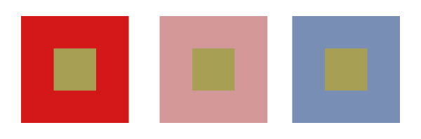 Цвета не существуют сами по себе. Они основываются на отношениях. Например, если вы хотите сделать цвет ярче, вы можете либо увеличить их яркость, либо понизить яркость фона. Красный, будучи теплым цветом, становится теплым или холодным в зависимости от соседнего цвета. Даже насыщенность меняется из-за отношений!
