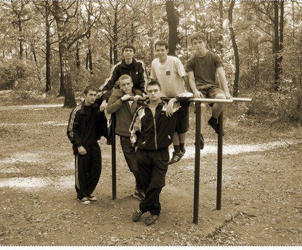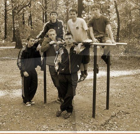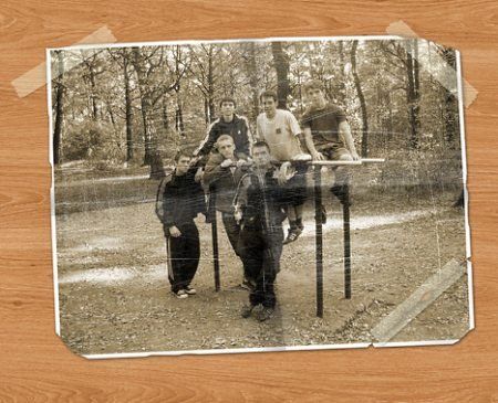 Для примера я взял старую фотографию, где я с друзьями в лесу, на турниках. Да-да, были времена – бегали в лесу, качали пресс, подтягивались и отжимались. И, результатом этого урока будет своего рода воспоминание, дань дружбе.