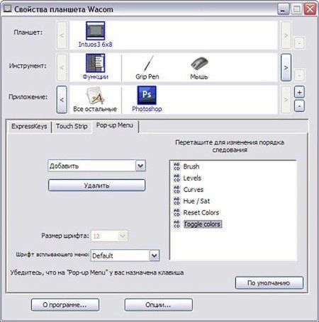 Раз мы заговорили о планшете, то сперва оговорюсь, что для эффективной работы на диджитайзере его необходимо настроить под себя и под приложение, в котором будем работать. Для меня настройка планшета – это присвоение всем экспресс-клавишам, сенсорным полоскам и кнопкам на пере тех функций, которыми пользуешься чаще всего. Кому будут интересны мои находки, советую прочитать другую мою статью про настройку Intuos3 A5 для работы с фотошопом.
