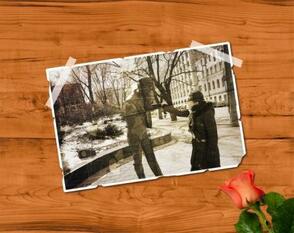 Мне кажется, нам хорошо удалось передать атмосферу у кадра – старые воспоминания; прилепленный скотчем кусок фотографии символизирует бережное отношение к дорогому снимку, желание сохранить то, чего возможно уже нет. Это куда лучше цветной фотки, которая несет гораздо меньше.