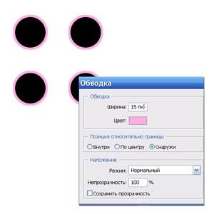 Выполняем обводку дырочек и удаляем черные кружки (выделяем Волшебной палочкой