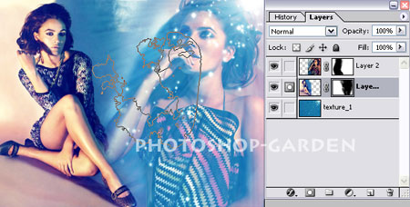 Выберите слой 1. Таким же образом, как делали раньше, сотрите контур первой фотографии.