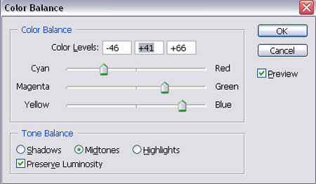 Выберите layer 1 (слой 1), нажмите Ctrl+J, чтобы дублировать его. Теперь выберите layer 1 copy (копию слоя 1) и нажмите Ctrl+B, в открывшемся окне установите такие параметры: