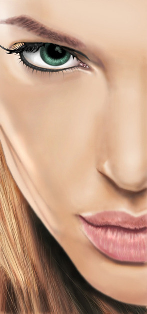 Поскольку различные детали портрета Анжелины расположены на отдельных слоях, цвета и уровни могут быть применены к ним независимо. Поиграйте с ними до тех пор, пока не достигните натурального оттенка. Завершите работу слиянием слоев и легким размытием выделяющихся участков.