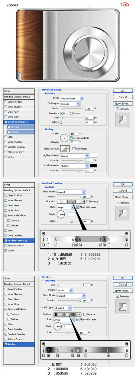 Шаг 15. Создайте новый слой, назовите его “zoom3” и нарисуйте круг (15a). Примените стили слоя (15b).