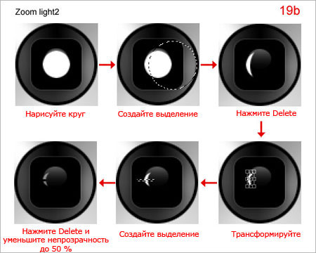 Шаг 19. Создайте “zoom light 1” (19a) и “zoom light 2”. (19b)