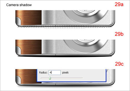 Шаг 29. Создайте новый слой под слоем “camera1” и назовите его “camera shadow”. Используя “Eliptical Marquee Tool