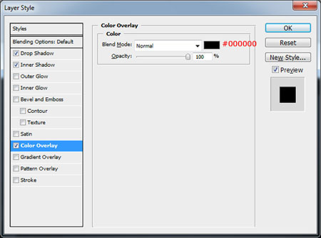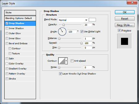 Заполните выделение черным цветом (#000000), затем придайте тень, используя следующие настройки.