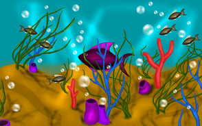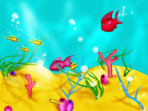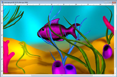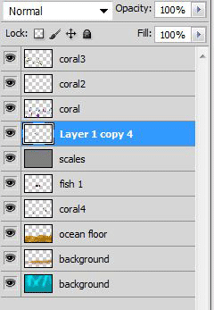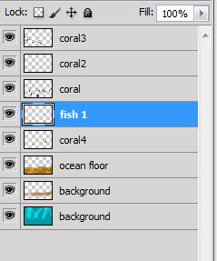 Шаг 1. Создайте новый слой над слоем «coral 4». Слой назовите «fish 1»