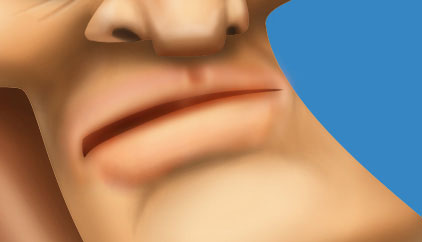Шаг 23. Для рта создаем новый слой и меняем режим смешивания на Color (Цветность) и уменьшаем opacity (непрозрачность) до 50-55%. Мягкой кистью