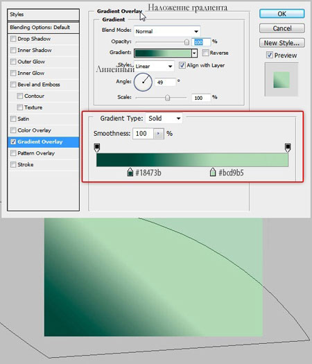 (Gradient) к этому кругу. Кликните по иконке Fx в нижней части палитры слоев и выберите Перекрытие градиентом (Gradient Overlay). Примените настройки, указанные ниже.