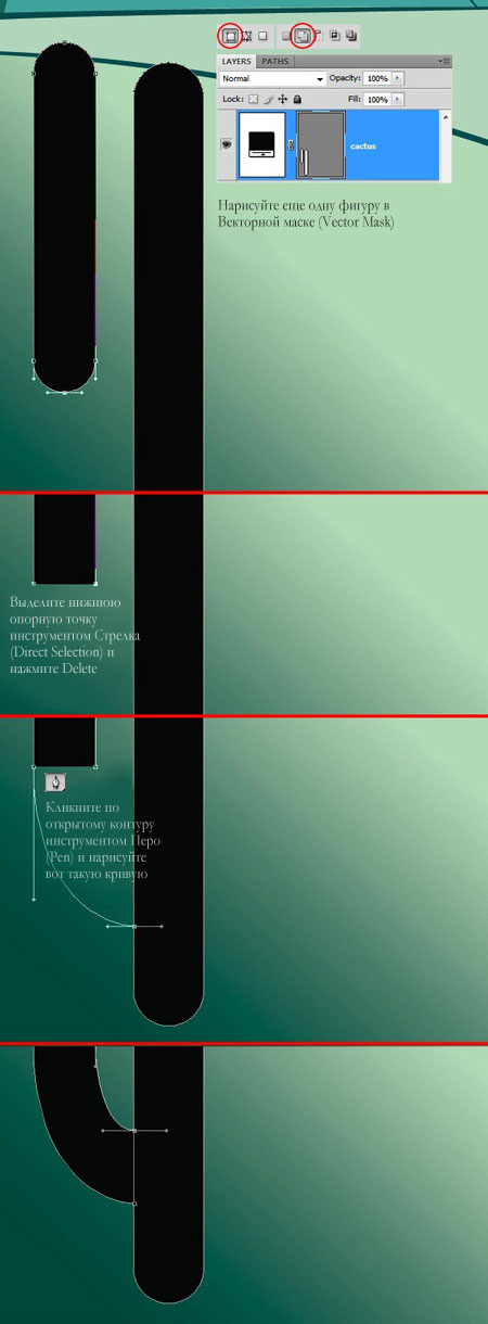(Rectangle). Рисуйте им внутри векторной маски (vector mask), удерживая клавишу Shift.