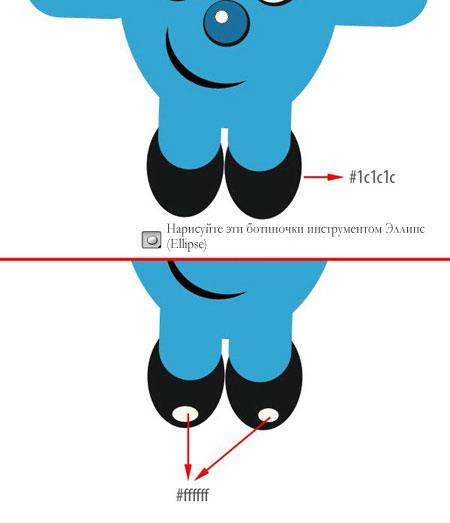 Теперь создадим глаза. Нарисуйте овал, как показано ниже, с помощью инструмента Эллипс