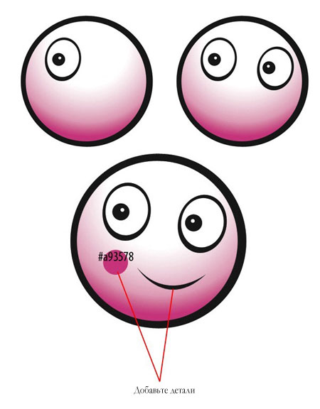 Теперь начните создавать глаза и другие детали лица персонажа.