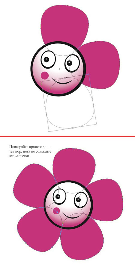 Затем нарисуйте лепестки. Нужно создать один лепесток, а затем мы можем его Дублировать (Duplicate) и Повернуть (Rotate).