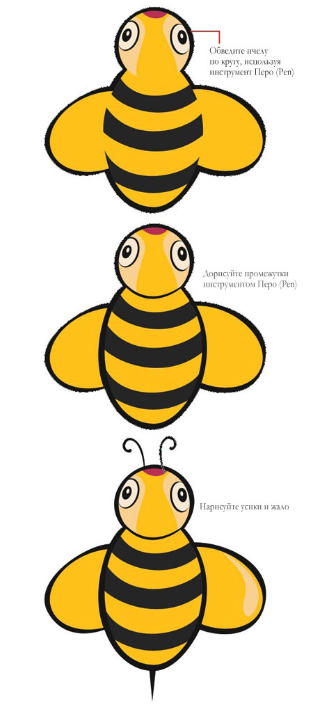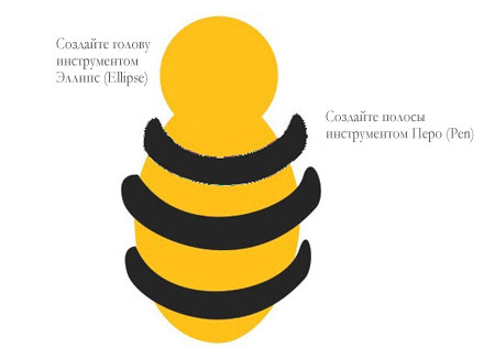 (Ellipse). Добавьте несколько полосок к телу пчелы. Нарисуйте их с помощью инструмента Перо