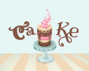 Шаг 30. Теперь добавьте слово cake(торт) используя шрифт "VTKS black" c цветом # 3(805841), размер шрифта 200-205pt.Разместите "Ca" и "KE" на разных слоях.