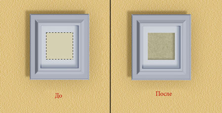 Шаг 18. Вырезаем квадратную область текстуры и помещаем на рабочий документ. Называем слой с ней "Основа дверцы". Добавляем Drop Shadow (Тень) и Outer Glow (Внешнее свечение), чтобы создать тень.