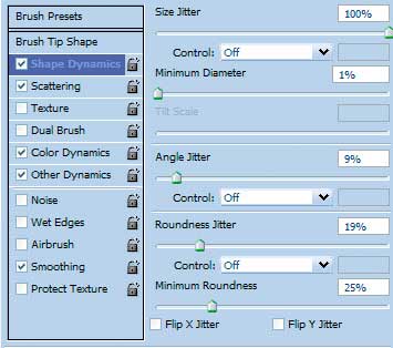 Меняем форму отпечатка кисти: диаметр - 70 пикселей