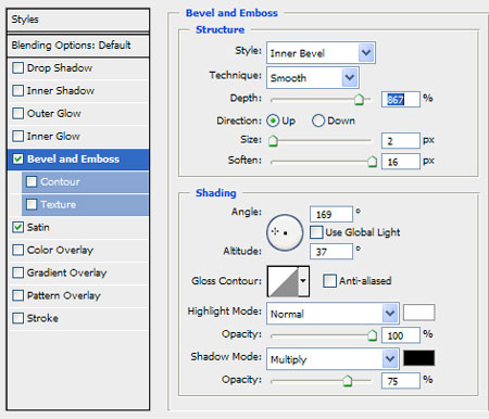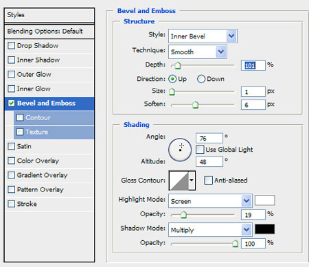 Шаг 25. Применяем стили слоя Layer - Layer Style (Слой - Стили слоя) для "Металлического кольца".