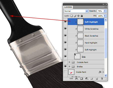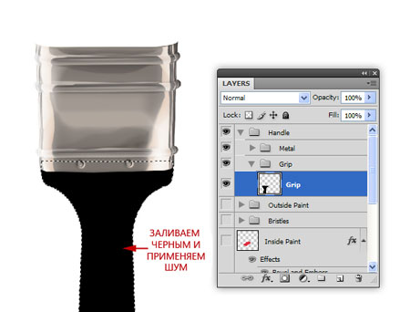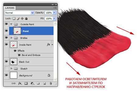 Шаг 7. Далее мы должны добавить краски на щетину. Для этого создаем новый слой "Внутренняя краска" под группой "Щетина". Затем используем Brush Tool