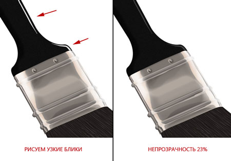 Шаг 16. Теперь рисуем блики белым цветом, как показано ниже. Затем устанавливаем Opacity (Непрозрачность) слоя на 11%.