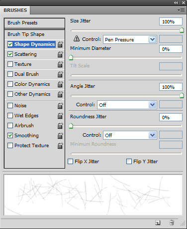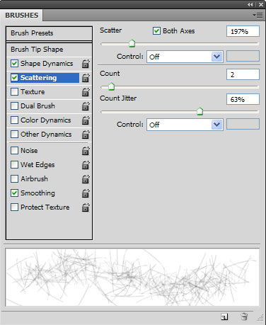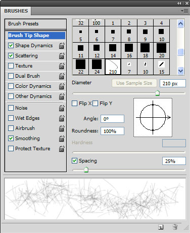 Шаг 37. Открываем панель кистей и корректируем параметры новой кисти.