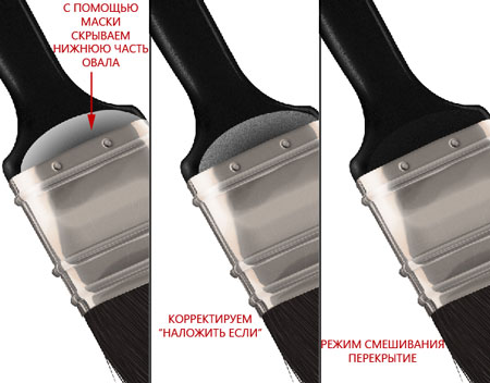 (Кисть) (В), чтобы добавить узкий блик на краю овала. Затем с помощью Blur Tool
