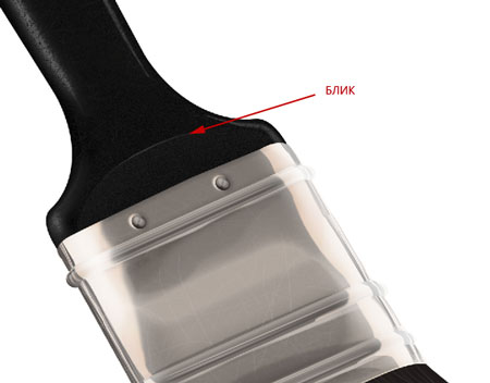 Шаг 34. Теперь приступим к текстурированию ручки. Создаем новый слой над слоем "Держатель" и преобразовываем его в обтравочную маску, затем используем мягкую кисть, чтобы зарисовать держатель белым цветом, как показано ниже. Уменьшаем Opacity (Непрозрачность) слоя до 3%.