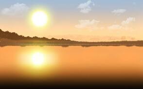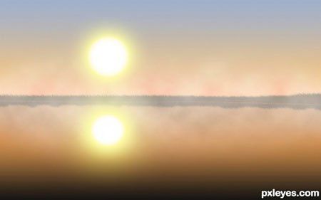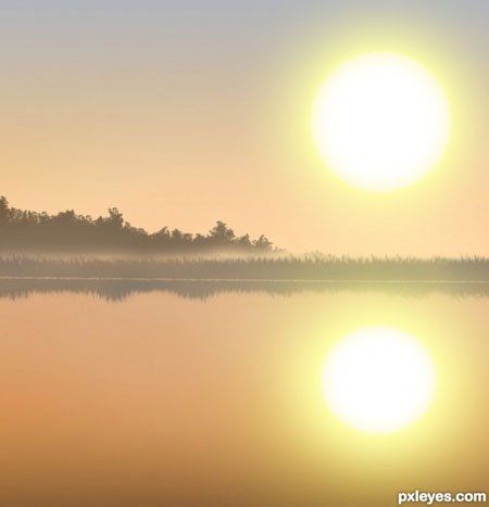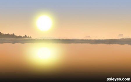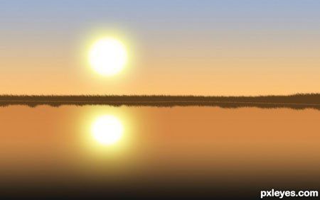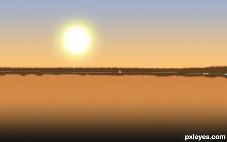 Очень хорошо! Но отражение в воде лучше сделать с рябью и более размытым. Вместо отражения солнца лучше сделать солнечную дорожку на воде.