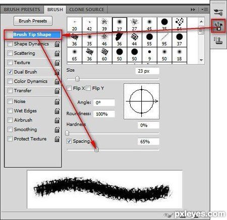 Шаг 21. Из выпадающего меню выбираем Brush