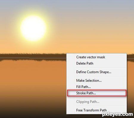 Шаг 20. Кликаем правой кнопкой по рабочему полотну и выбираем Stroke Path (Обводка контура)