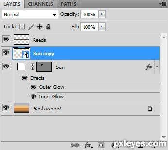 Шаг 24. Создадим отражение солнца на воде. Дублируем слой с солнцем. Кликаем по нему правой кнопкой мышки и выбираем Duplicate Layer (Дублировать слой) или жмем CTRL+J.